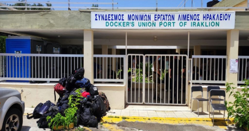 Ο.Λ.Η. Α.Ε. Στην αίθουσα λιμενεργατών στο λιμάνι του Ηρακλείου φιλοξενούνται άνδρες μετανάστες.