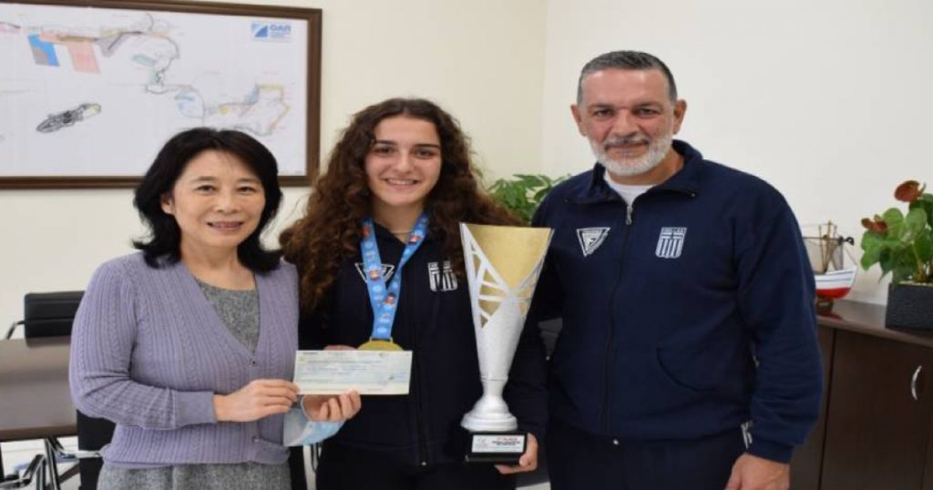 Ο.Λ.Π. Α.Ε. Συνάντηση και βράβευση από την Οικονομική Διευθύντρια κα Li Jin της Μαρίας Μιχαλακάκου για την κατάκτηση της πρώτης θέσης στο παγκόσμιο πρωτάθλημα kick boxing